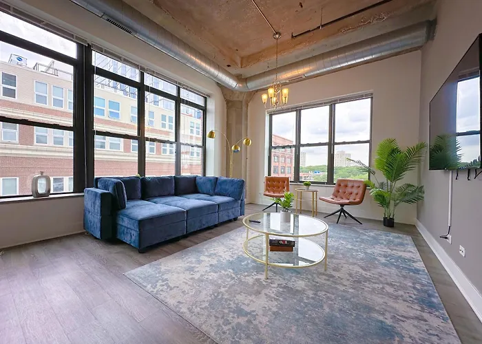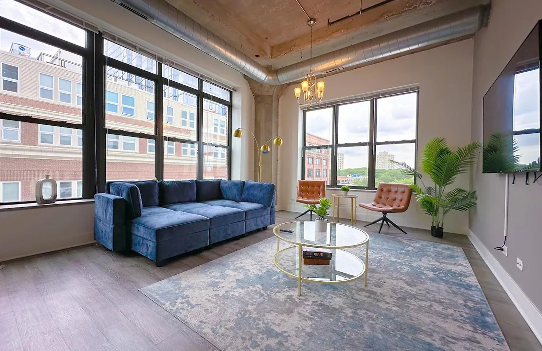 The 2-room Spacious And Luxurious 3Br Near Mccormick Place And Soldier Field With Optional Parking - Sleeps 10 Chicago apartment offers easy entry to such city sights as the indoor Wintrust Arena, situated nearly a 5-minute walk away. The apartment also has a patio overlooking the city.